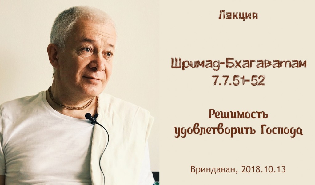 Добавлена лекция "Решимость удовлетворить Господа" по книге "Шримад-Бхагаватам" песнь 7 глава 7 стихи 51-52, которая состоялась во Вриндаване 13 октября 2018 года