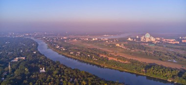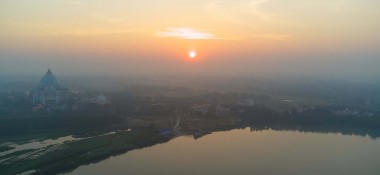 Мы с вами находимся в Индии. И мы находимся в том месте, где Ганга постепенно подходит к океану. Это место недалеко от Калькутты. И это место рождения Господа. Это очень святое место. В этом месте строится величественный Храм Ведического Планетария, который на самом деле один из самых больших храмов в мире, то есть его высота 113 метров вместе с куполом.