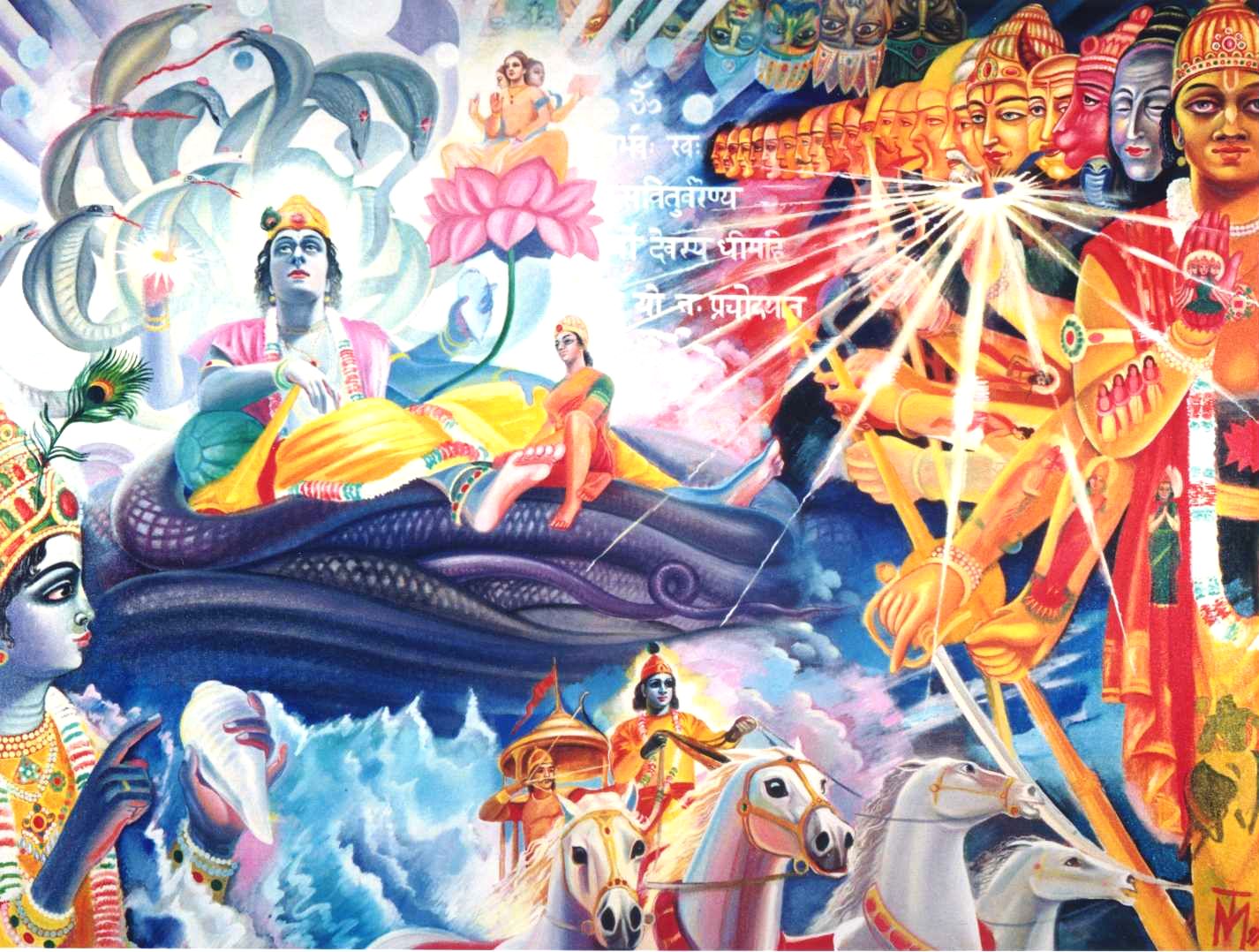 Александр Хакимов: Это тот же самый Кришна, Бог один. Представьте, что у меня в руке большой драгоценный камень со множеством граней. Я могу немного повернуть его – цвет изменится. Еще чуть-чуть – и он сияет уже совсем по-другому. Никто не знает, сколько у него граней. Поэтому Веды говорят, что у Бога нет имени, потому что Его качества безграничны. У Него миллионы имен и все же, если вы хотите иметь с Ним личные отношения, как с объектом любви, то для этого лучше всего подходит имя «Кришна» – «Всепривлекающий», «Обладающий всеми энергиями». Это лучшая форма для любовных отношений. Эте чамша-калах пумсах кришнас ту бхагаван свайам. «Все перечисленные воплощения представляют собой либо полные части, либо части полных частей Господа, однако Господь Шри Кришна – изначальная Личность Бога» («Шримад-Бхагаватам», 1.3.28). Изначально Он – Кришна, как первая свеча, от которой зажжены миллионы свечей. В «Брахма-самхите» говорится: Ишварах парамах кришнах. Ишварах – «высший», парамах – «выше всех», Кришна. Сач-чид-ананда-виграхах – «Духовная вечность, знание и блаженство – Его форма». «Предвечный, изначальный, причина всех причин» – сарва-карана-каранам. В русских Ведах Кришна и Вишну – это Крышень и Вышень. Ведическое знание – не какое-то национальное знание; оно не русское, не индийское, а вселенское. В Ведах описывается природа Вселенной, энергия Вселенной, история Вселенной. Это не для России и не от России; не для Индии и не от Индии, – это от Бога. Существует парампара – цепь преемственности из сердца в сердце.