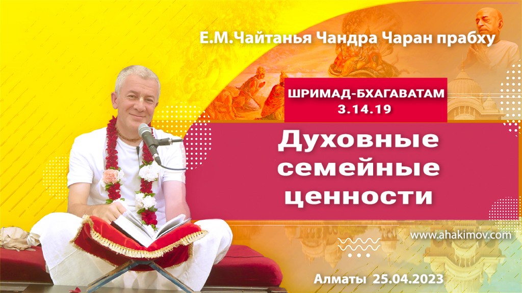 В раздел "Аудио Видео" добавлена лекция "Духовные семейные отношения" по книге "Шримад-Бхагаватам", песнь 3, глава 14, стих 19, которая состоялась в Алматы 25 апреля 2023 года.