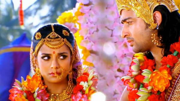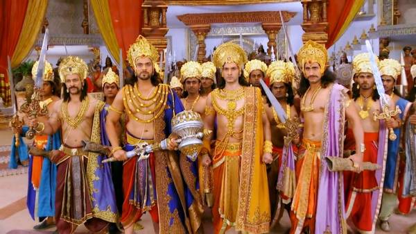 Драупади становится женой пятерых Пандавов. Это нелегкий шаг и для нее, и для ее пяти мужей. Но делая его и Драупади, и сыновья Панду ощущают поддержку Кришны. Он уверяет их в том, что именно такой союз необходим всем Арийским землям. Только пример Драупади может восстановить дхарму. С горечью понимая, что амбиции и жестокость Дурьодханы – это плод его желаний, Дхритараштра все же не может отказать сыну ,он объявляет о коронации Дурьодханы. Но когда долгожданный для Дурьодханы миг почти настал, церемонию неожиданно прерывает Бхишмадев.