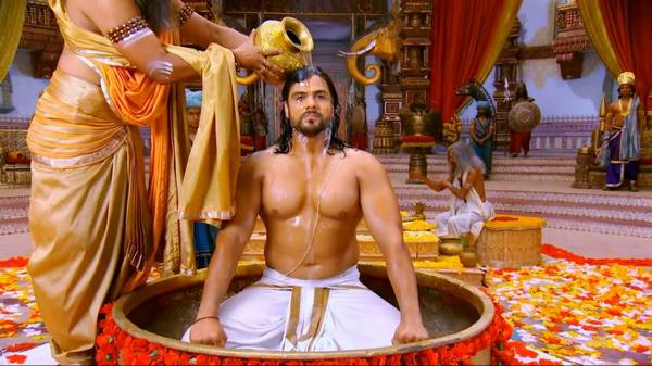 Защитник трона Бхишма не просто так прерывает коронацию Дурьодхана – он заявляет, что первый наследник престола, Юдхиштхира, жив. Эта новость поражает всех присутствующих. Как-будто в ответ на требования Дхритарарштры предъявить доказательства того, что Пандавы действительно живы, раздаются звуки литавр, приветствующие пятерых сыновей Панду. Вместе со своей женой они въезжают в Хастинапур. Вся царская семья встречает наследников у входа во дворец. Но за время их отсутствия многое изменилось в жизни Пандавов. Как им объяснить свою жизнь в лесу, брак Бхимы и царицы ракшасов, и то что все они пятеро стали супругами одной царевны?