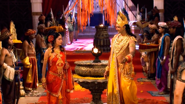 Драупади возвращается к отцу, а Кришна все больше раскрывает героям свой план – у царевны, которой суждено всю жизнь бороться с неправедностью, должна быть надежная защита – ее семья. Кришна, Дрона и Драупада сходятся во мнении, что лучшим супругом для Драупади может стать только Арджуна.