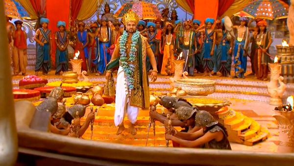 Наконец исполняется мечта Дхритараштры – его сын восходит на трон. Ослепленный своим счастьем, Дурьодхана как никогда самоуверен. Его высокомерие старается укрепить Шакуни, уверяя царевича, что принцесса Драупади, несомненно, мечтает только о таком муже, как он.