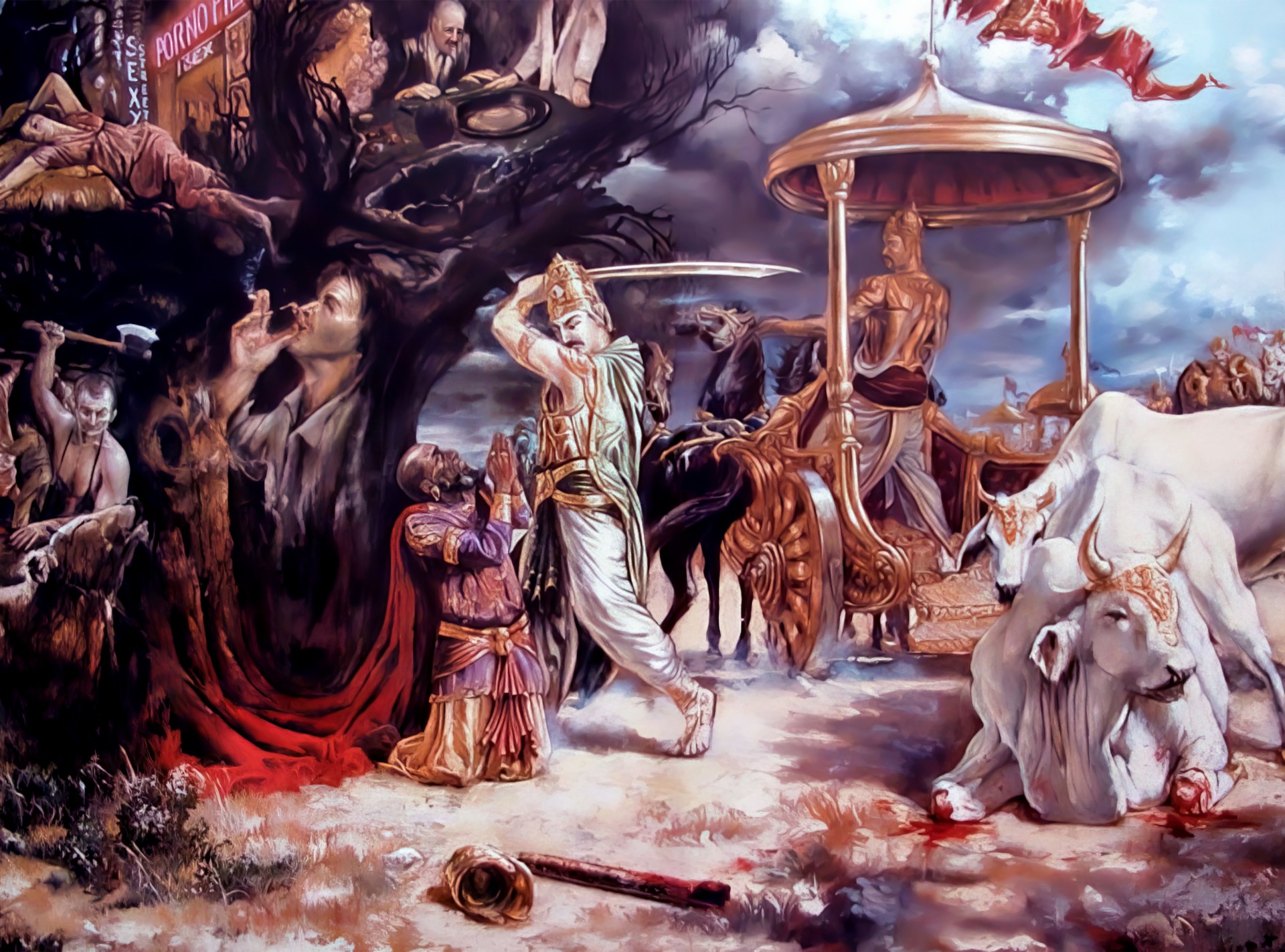 В последних частях Бхавишья Пураны Кали-юга весьма недвусмысленно описана как эпоха зла. Там говорится о завоевании Индии яванами (греками), ищущими богатой добычи. Эти яваны будут следовать неправедным путем: их цари не будут обладать качествами, приличествующими царю. Разные народы будут поочередно выдвигаться на первый план и править землей, другие же тем временем будут приходить в упадок. Бесчестные, нищие цари будут убивать друг друга по пустякам. Высокоученые аръяны и невежественные млеччхи, не следующие ведической традиции, будут свободно смешиваться друг с другом. Низкородные правители, явившиеся в результате этого смешения, создадут такие условия, при которых женщин, детей и стариков перестанут уважать и начнут безжалостно убивать. Поскольку яваны, арьяны и млеччхи будут сменять друг друга у власти, цивилизация придет в упадок, мораль будет разрушена, а население погибнет.