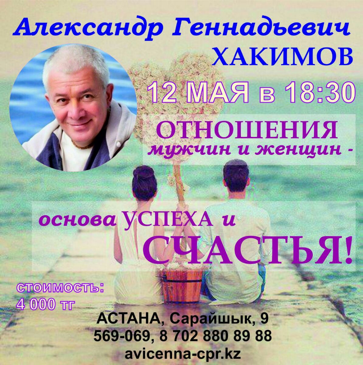 12 мая в Астане Александр Хакимов прочитает лекцию "Отношения мужчин и женщин - основа успеха и счастья"