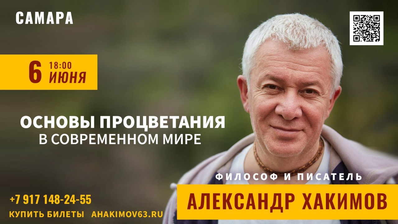 6 июня в Самаре состоится семинар Александра Хакимова на тему "Основы процветания в современном мире"